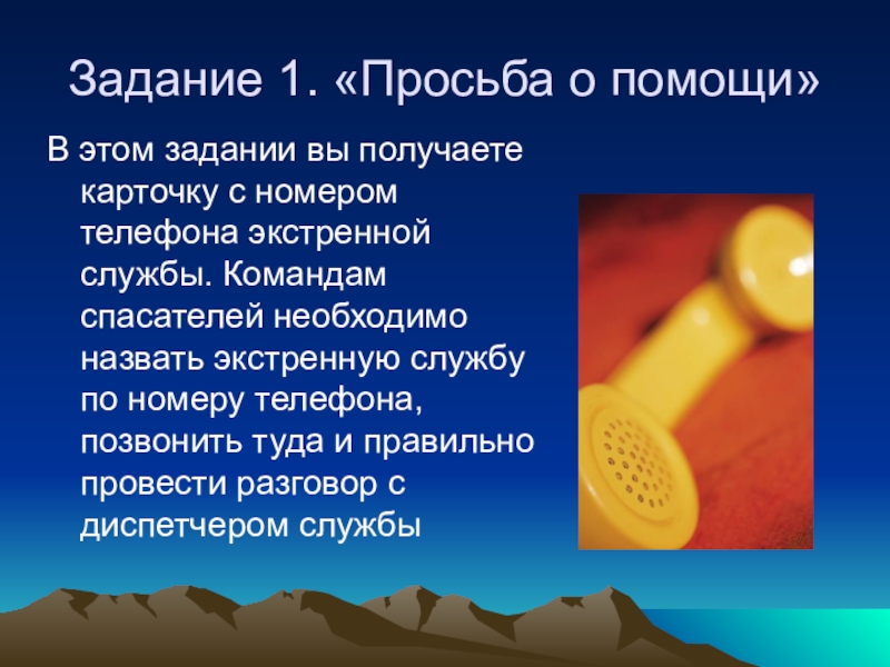 номером телефона экстренной службы. Командам спасателей необходимо назвать экстренную службу по номеру телефона, позвонить туда и правильно провести разговор с диспетчером службы