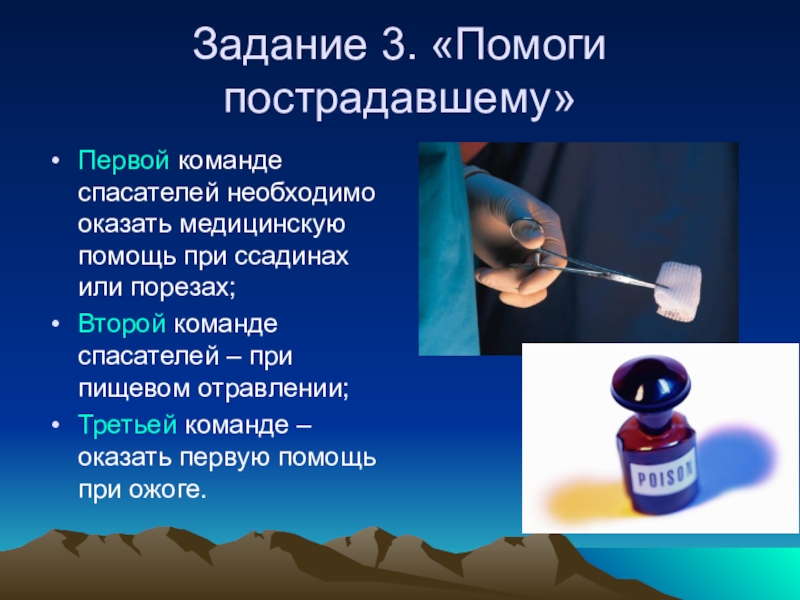 Слайд 11Задание 3. «Помоги пострадавшему»