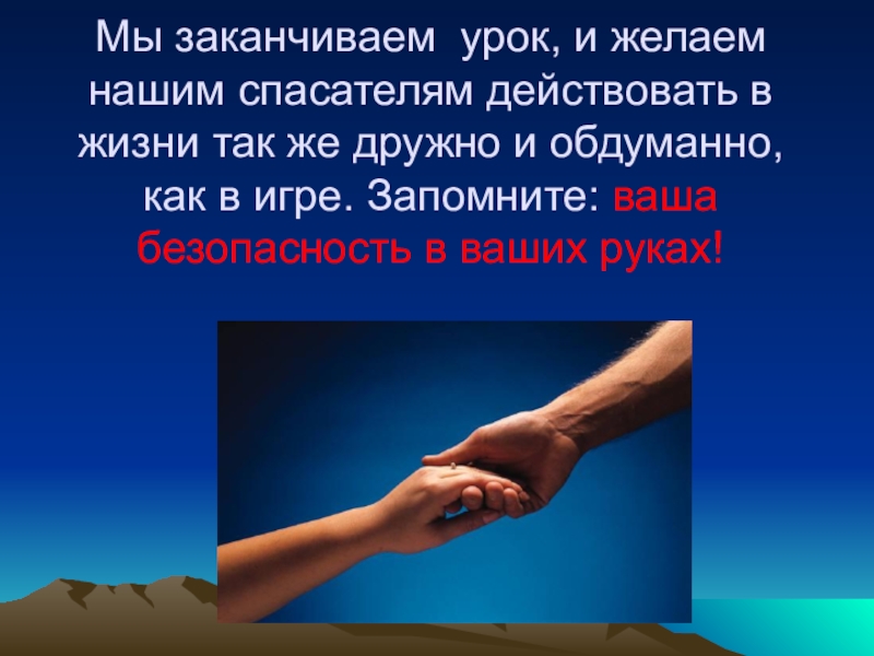 Слайд 21Мы заканчиваем урок, и желаем нашим спасателям действовать в жизни так