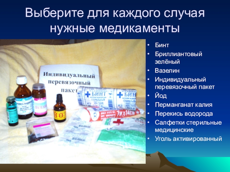 Слайд 12Выберите для каждого случая нужные медикаменты
