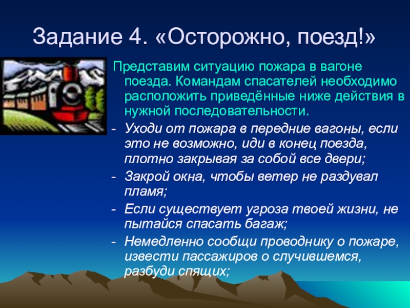 Слайд 15Задание 4. «Осторожно, поезд!»