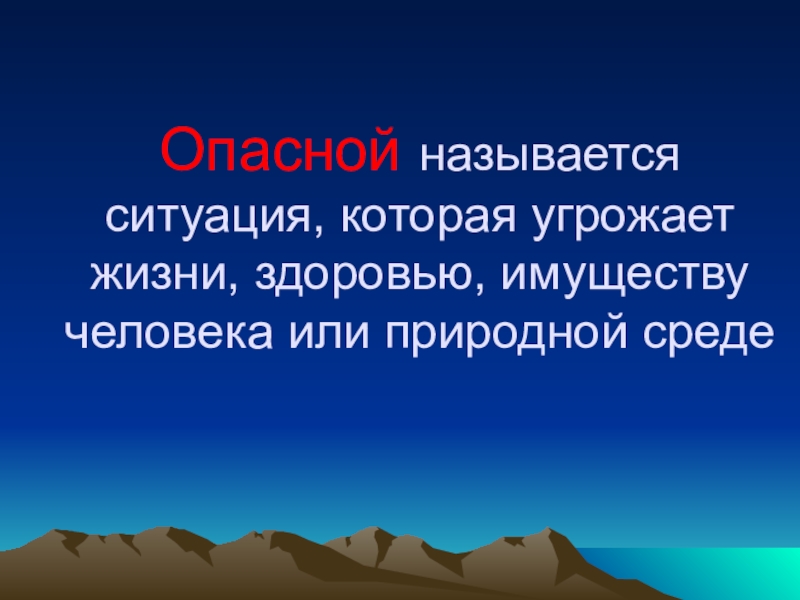 Слайд 2Опасной называется ситуация, которая угрожает жизни, здоровью, имуществу человека или природной