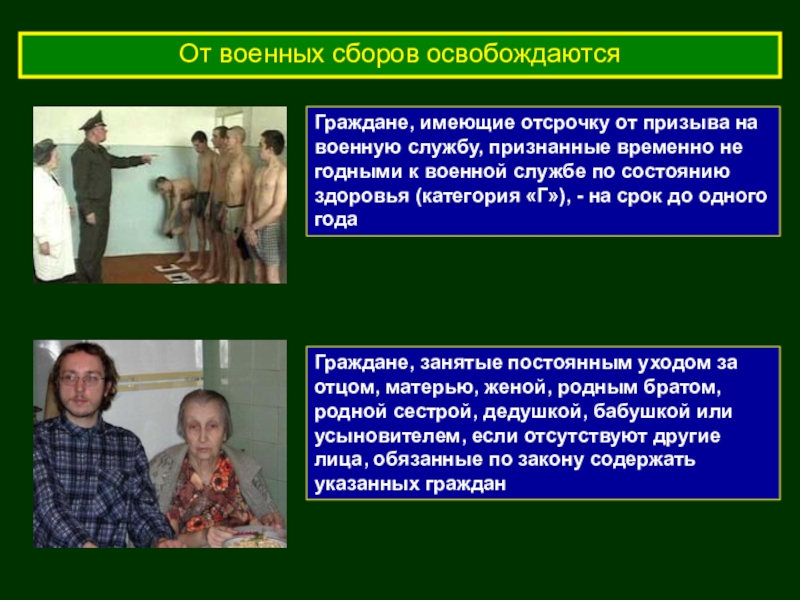Не прошедших военную службу в связи с освобождением от призыва
