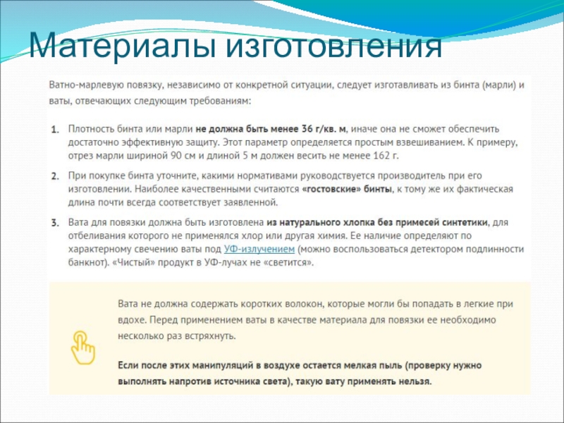 Презентация, доклад по ОБЖ на тему Ватно-марлеевая повязка