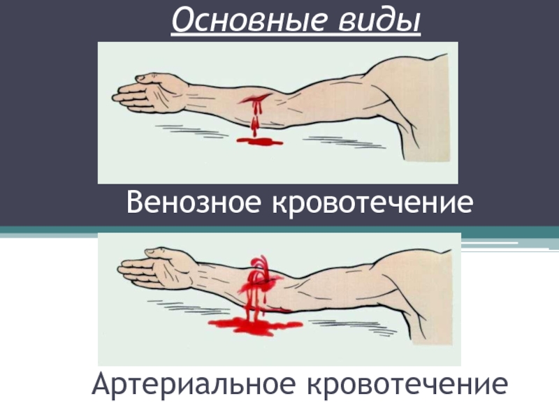Основные видыВенозное кровотечение Артериальное кровотечение