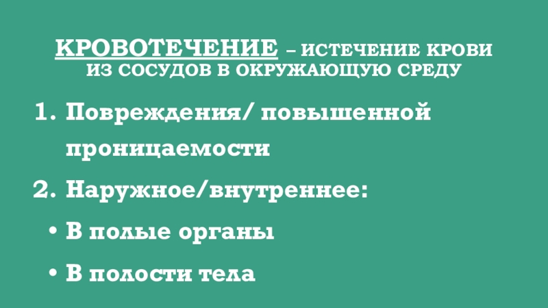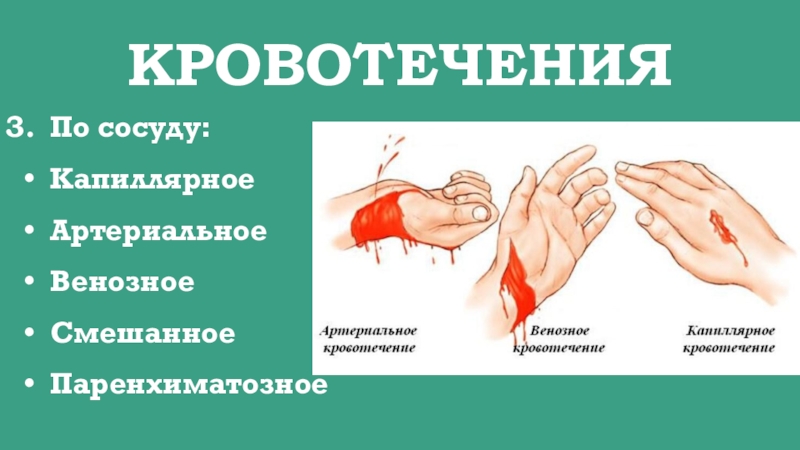Слайд 44Кровотечение – истечение крови из сосудов в окружающую среду