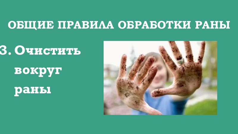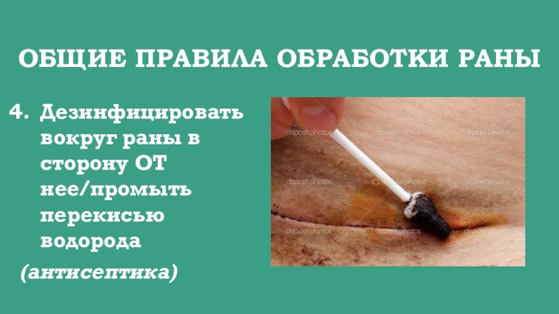 Дезинфицировать вокруг раны в сторону ОТ нее/промыть перекисью