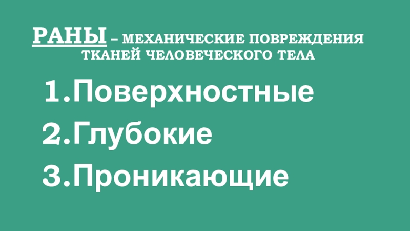 Слайд 32Раны – механические повреждения тканей человеческого тела