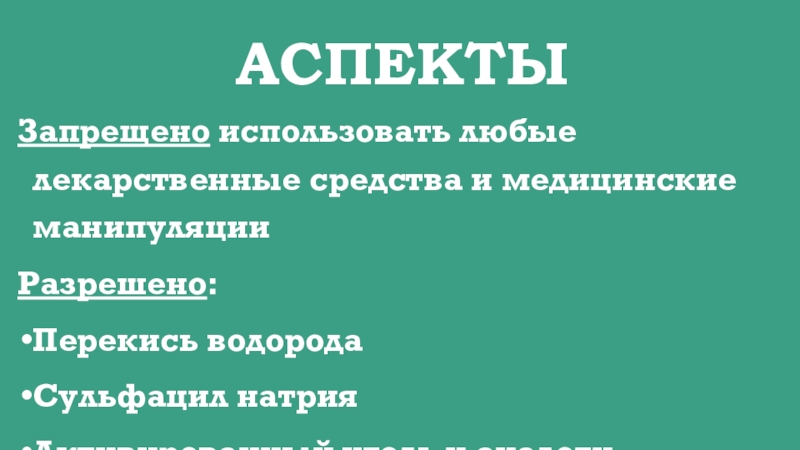 Запрещено использовать любые лекарственные средства и медицинские манипуляции