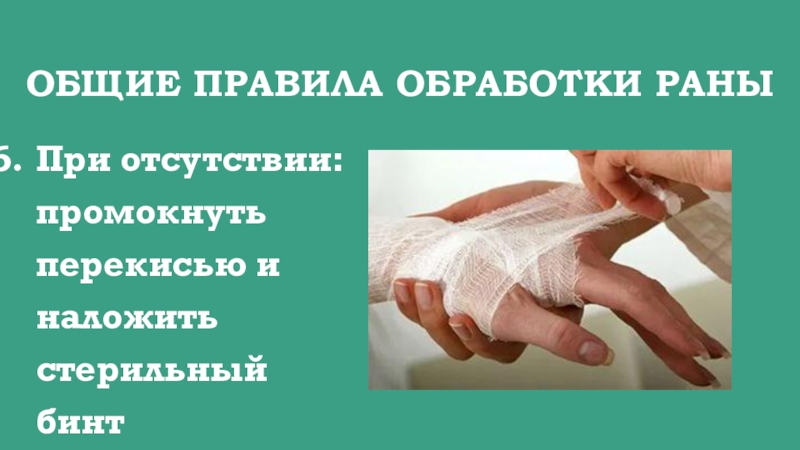 При отсутствии: промокнуть перекисью и наложить стерильный бинт