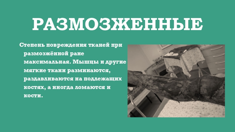 Степень повреждения тканей при размозжённой ране максимальная. Мышцы и другие мягкие