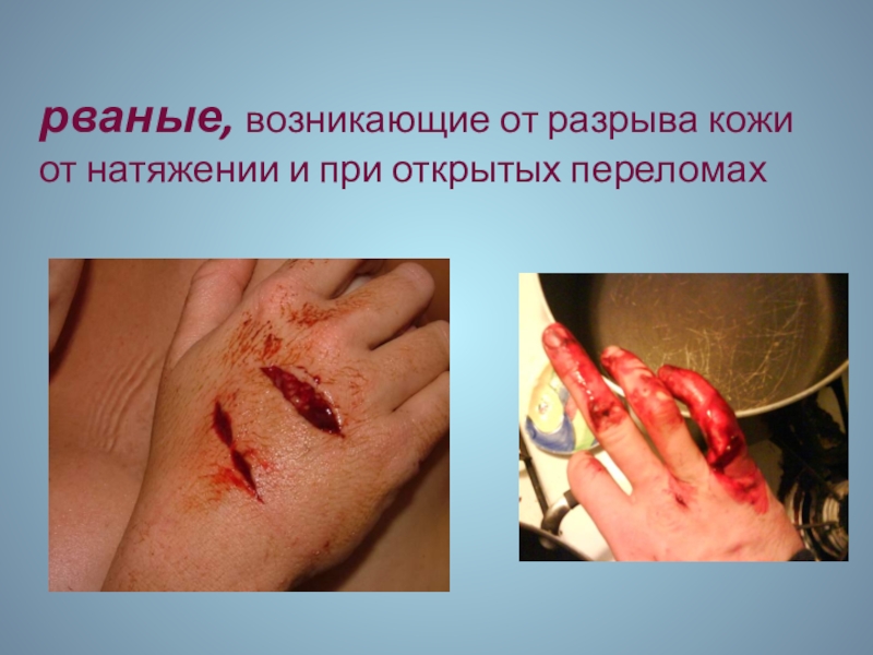 Слайд 14рваные, возникающие от разрыва кожи от натяжении и при открытых переломах