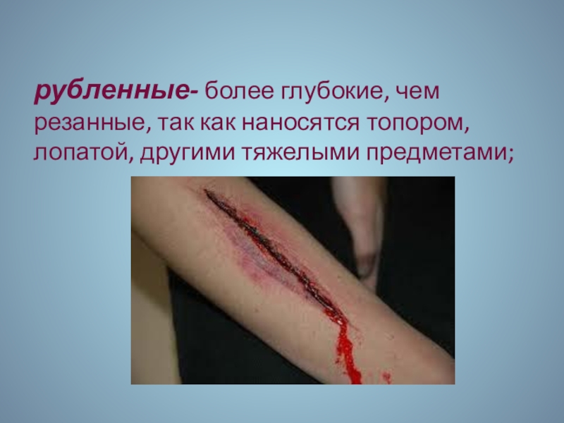 рубленные- более глубокие, чем резанные, так как наносятся топором, лопатой, другими