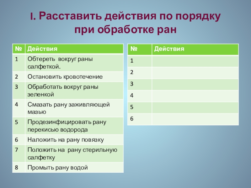 I. Расставить действия по порядку