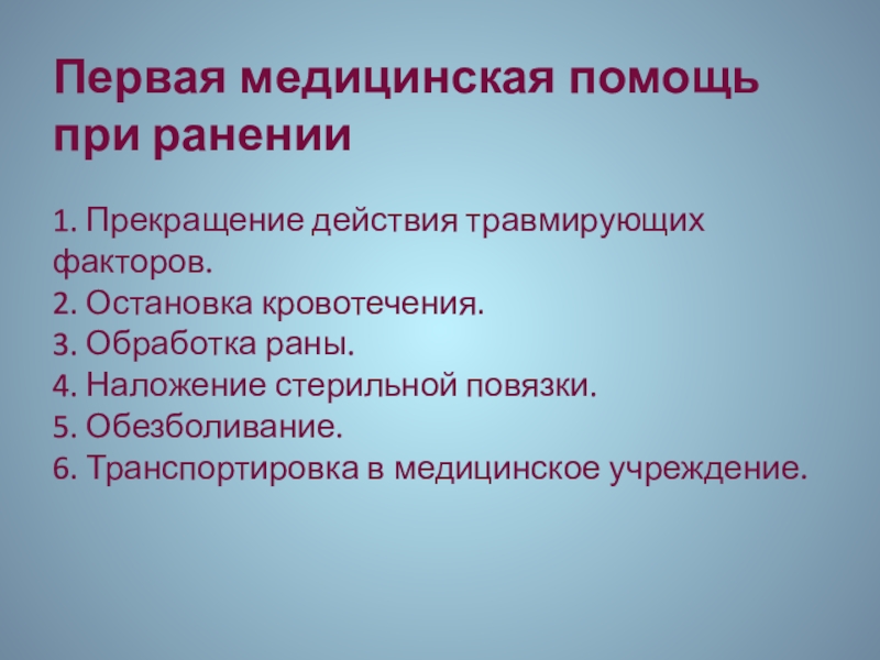 Слайд 22Первая медицинская помощь при ранении