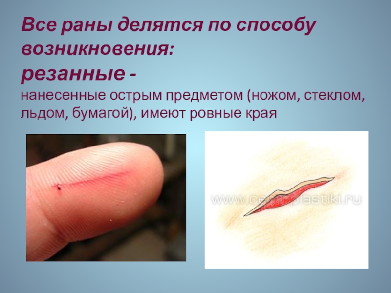 Слайд 8Одной из разновидностей травм является рана. С ранениями мы можем встретиться