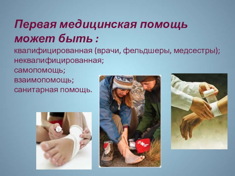 Слайд 17Первая медицинская помощь может быть :