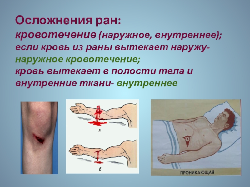 обильным кровотечением. Особенно опасно внутренних органов.