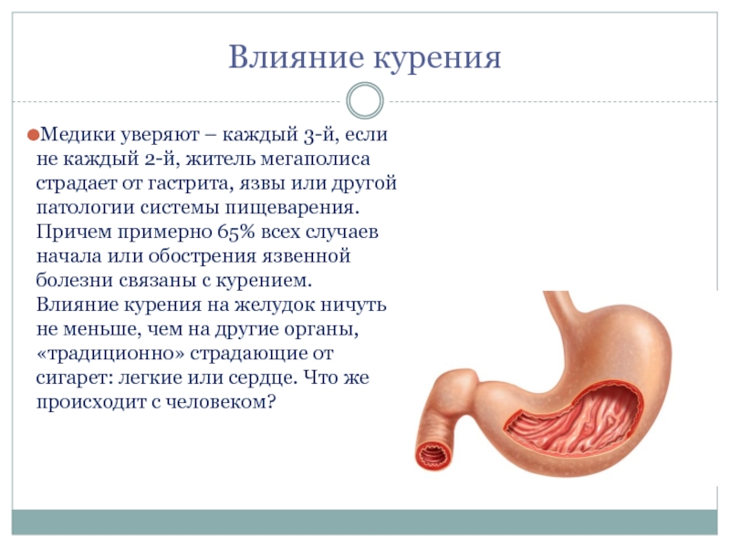 Рак. Если при наличии язвы больной продолжает курить, язвенная болезнь может перейти в рак. Опасность заболеть раком желудка у курящего намного выше
