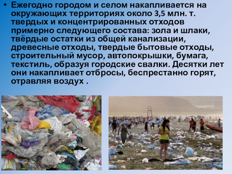 Слайд 9Ежегодно городом и селом накапливается на окружающих территориях около 3,5 млн.