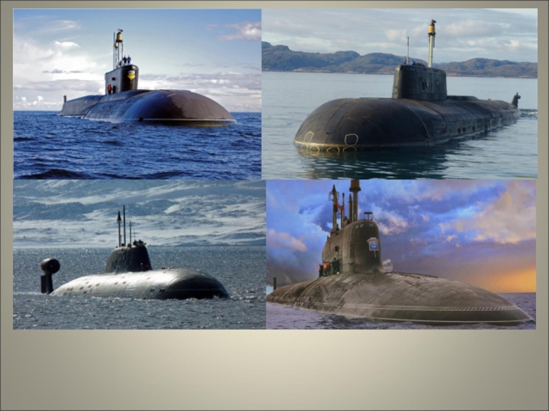 атомные ракетные подводные лодки стратегического назначения, атомные многоцелевые подводные лодки и дизель-электрические (неатомные) подводные лодки.