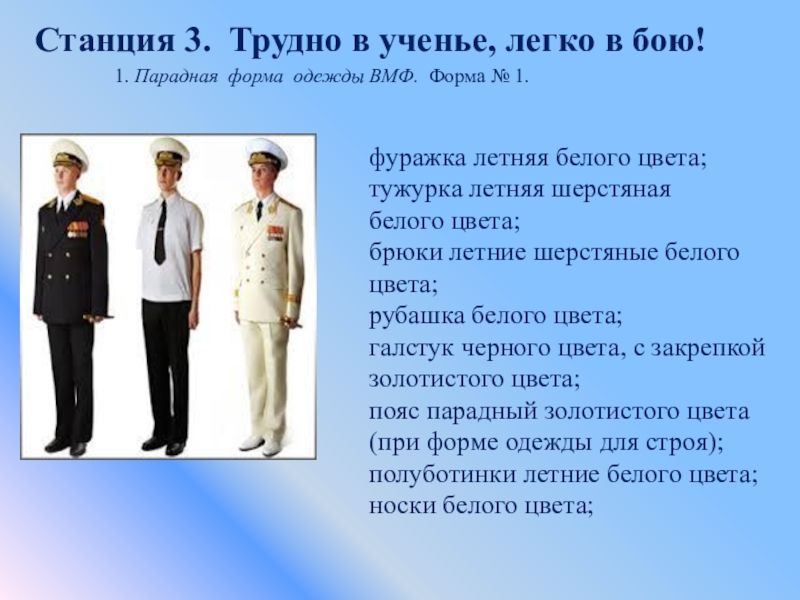 - пояс парадный золотистого цвета (при форме одежды для строя);