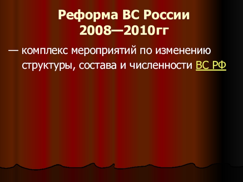 Реформа ВС России 2008—2010гг— комплекс мероприятий по изменению  структуры, состава и численности ВС РФ
