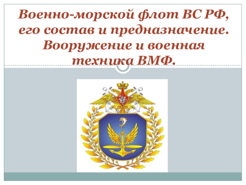 Слайд 1Военно-морской флот ВС РФ, его состав и предназначение. Вооружение и военная