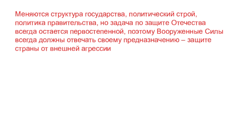 Слайд 48Меняются структура государства, политический строй, политика правительства, но задача по защите