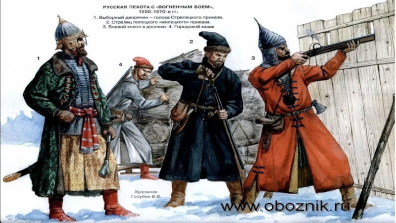 Иван Грозный продолжил начинания по укреплению мощи страны и в период с 1550 по 1571 г.г. провел первую «настоящую» военную реформу, начало которой положил указ от 3 октября 1550 года о разделе земель вокруг Москвы между 1000 помещиками, занявшими ключевые командные штаты в армии. Итогами этой работы стали: