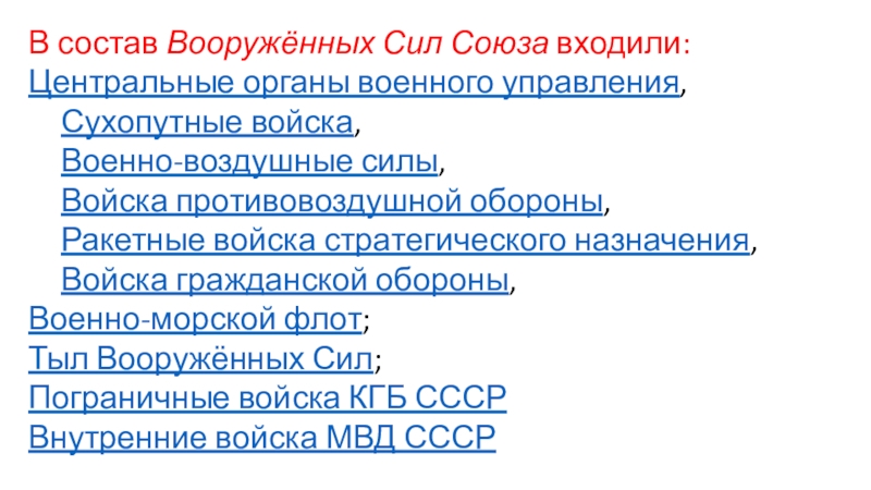 Слайд 44В состав Вооружённых Сил Союза входили: