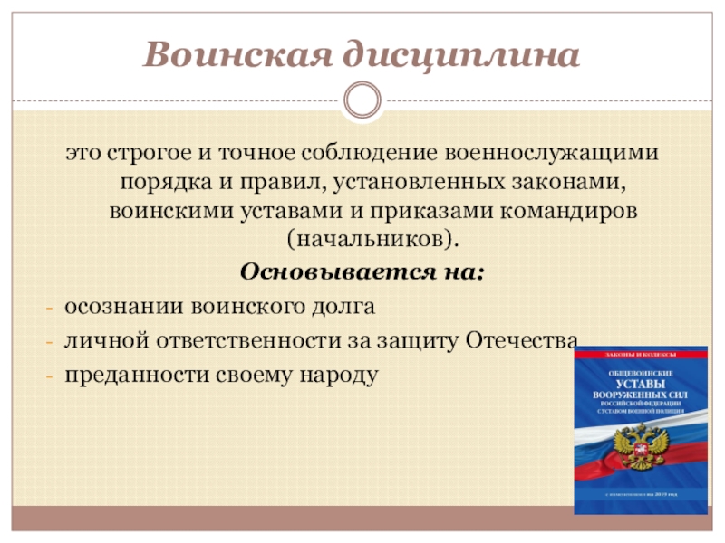 обеспечивает крепкую воинскую дисциплину, является надежным воспитательным средством, действующим