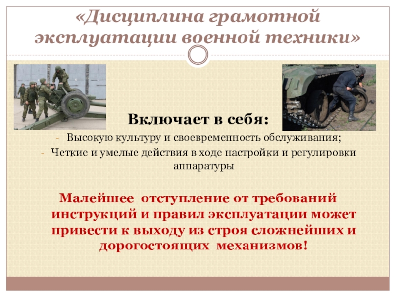 Слайд 5«Дисциплина грамотной эксплуатации военной техники»