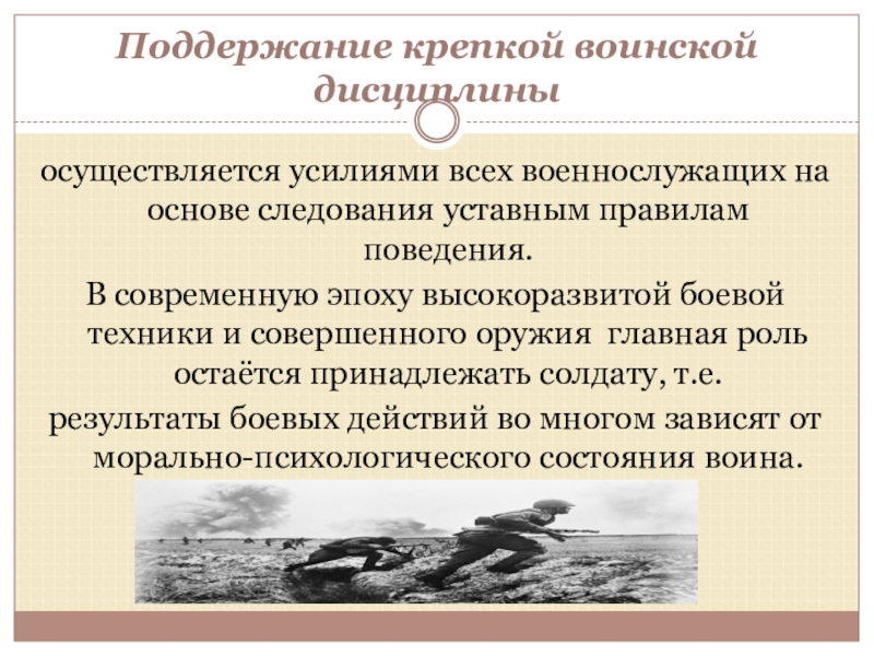 В современную эпоху высокоразвитой боевой техники и совершенного оружия главная роль остаётся принадлежать солдату, т.е.