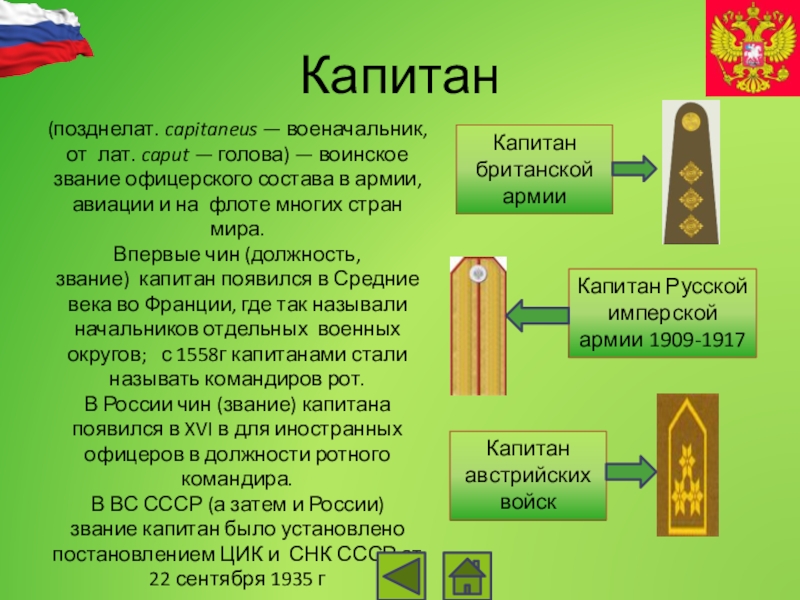 Капитан Русской имперской армии 1909-1917