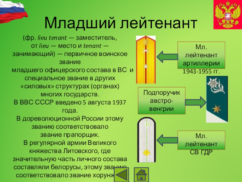 Мл. лейтенант артиллерии 1943-1955 гг.