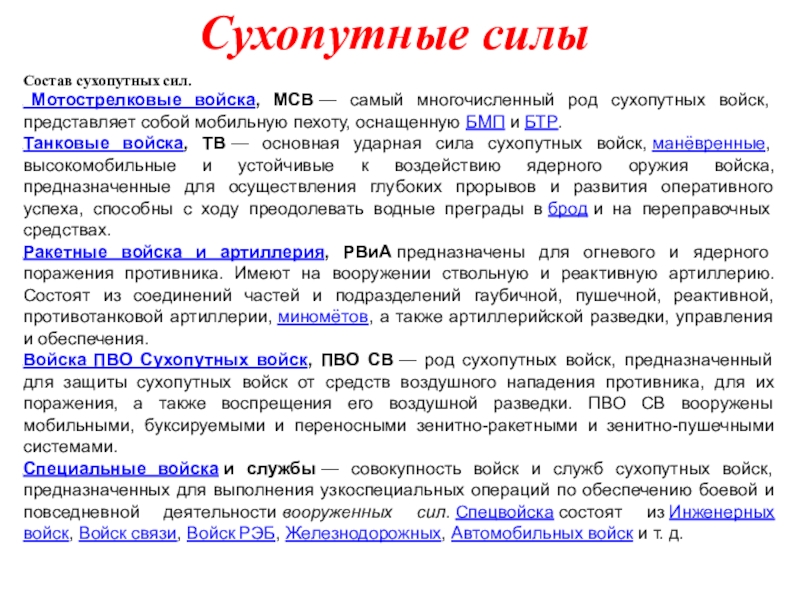 Слайд 13Танковые войска, ТВ — основная ударная сила сухопутных войск, манёвренные, высокомобильные и устойчивые