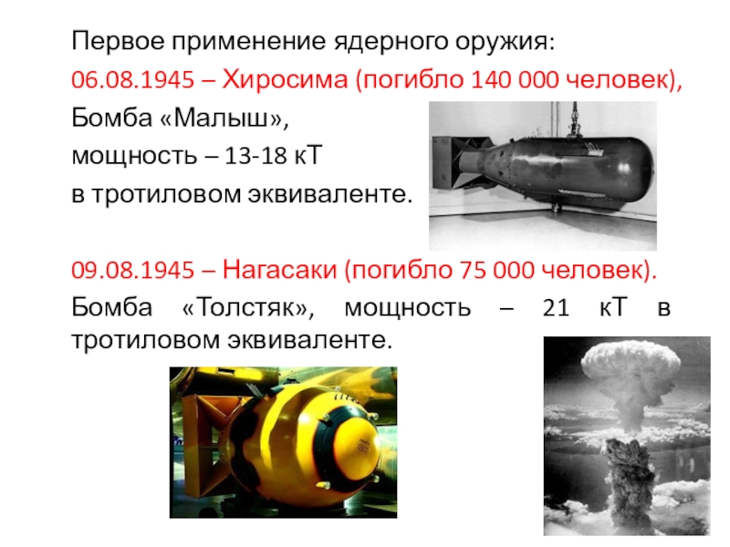 06.08.1945 – Хиросима (погибло 140 000 человек),