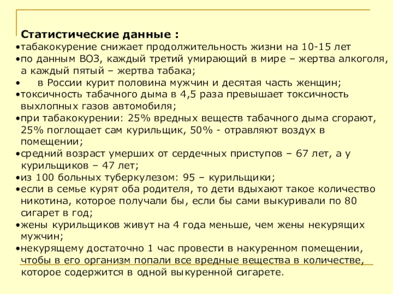 табакокурение снижает продолжительность жизни на 10-15 лет