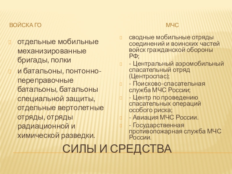 сводные мобильные отряды соединений и воинских частей войск гражданской обороны РФ;