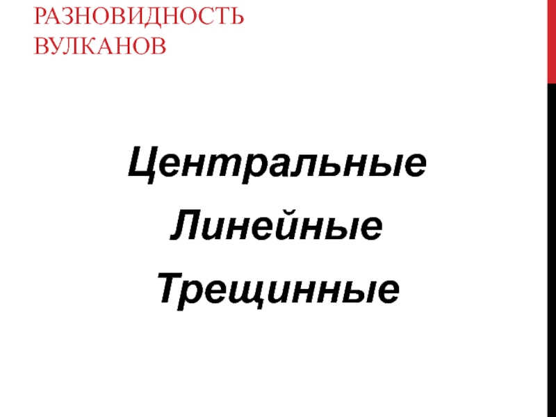 Слайд 9Вулканы – линейные, или трещинные. Их возникновение связано с подъѐмом жидкой