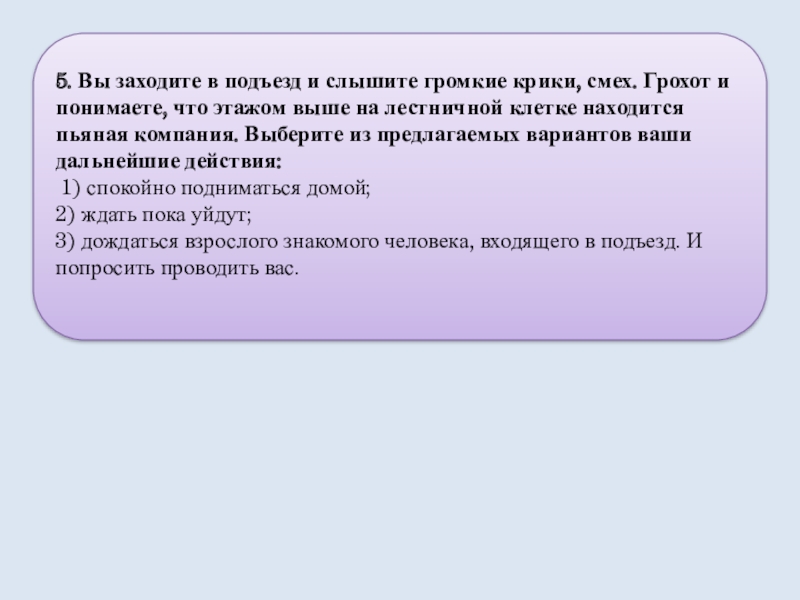 Слайд 155. Вы заходите в подъезд и слышите громкие крики, смех. Грохот
