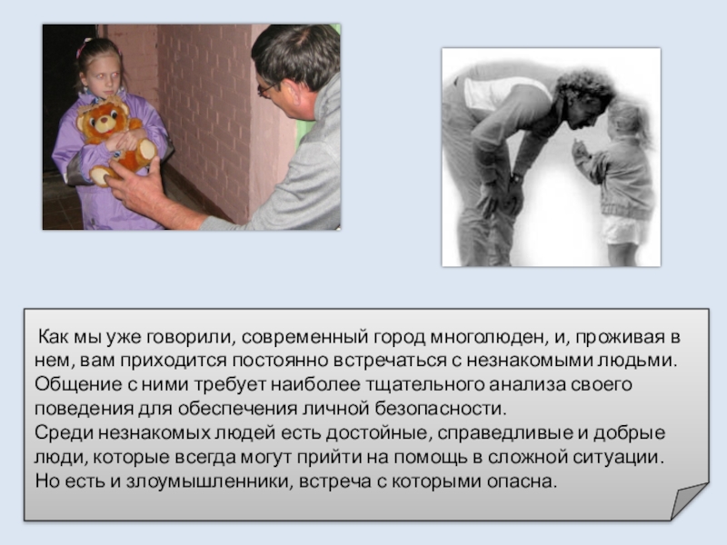 Среди незнакомых людей есть достойные, справедливые и добрые люди, которые всегда могут прийти на помощь в сложной ситуации. Но есть и злоумышленники, встреча с которыми опасна.