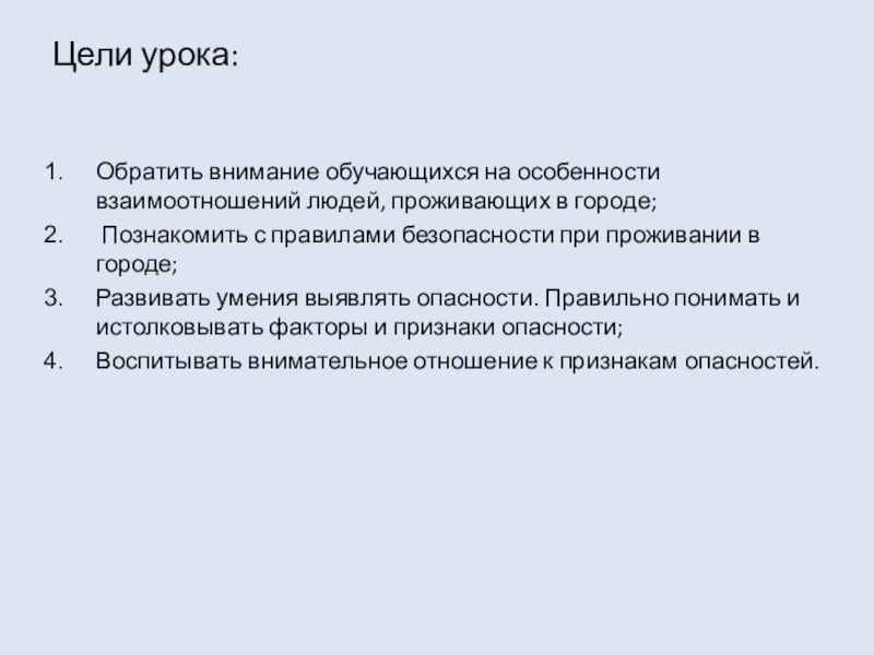 Обратить внимание обучающихся на особенности взаимоотношений людей, проживающих в городе;