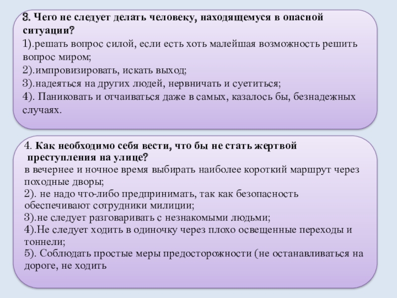2.Что нужно делать в опасных ситуациях криминогенного характера?