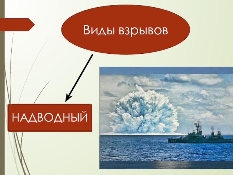 Виды взрывовНАЗЕМНЫЙПОДЗЕМНЫЙВОЗДУШНЫЙПОДВОДНЫЙНАДВОДНЫЙ