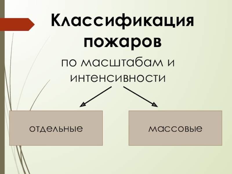 Классификация пожаровпо масштабам и интенсивностиотдельныемассовые