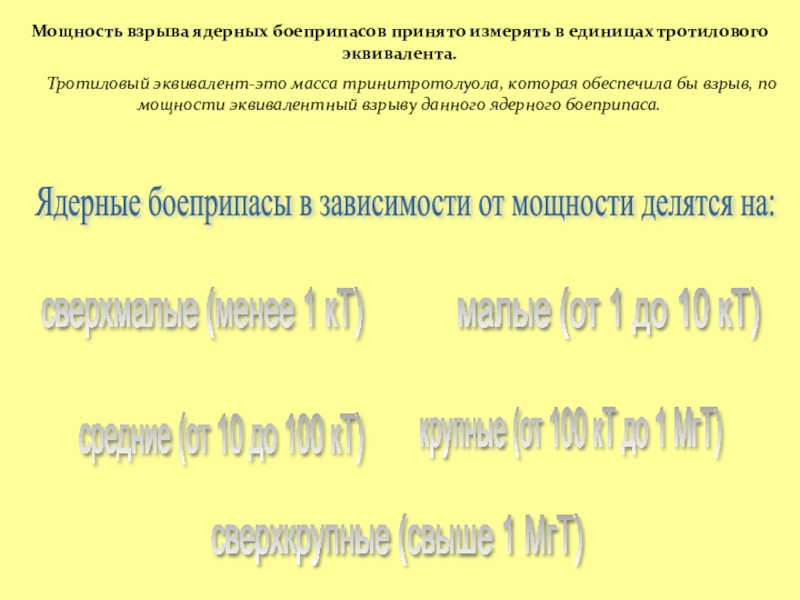 Ядерные боеприпасы в зависимости от мощности делятся на: