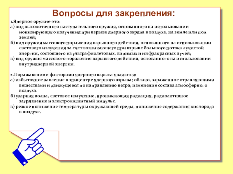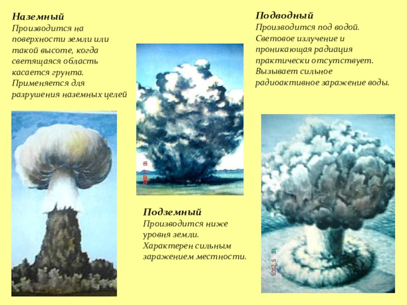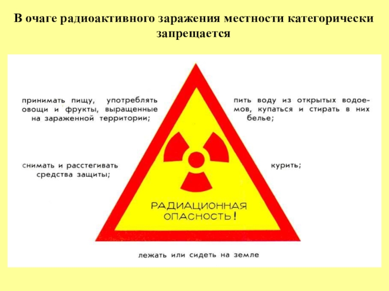 Радиоактивное заражение - заражение местности, атмосферы, воды и других объектов радиоактивными веществами из облака ядерного взрыва.