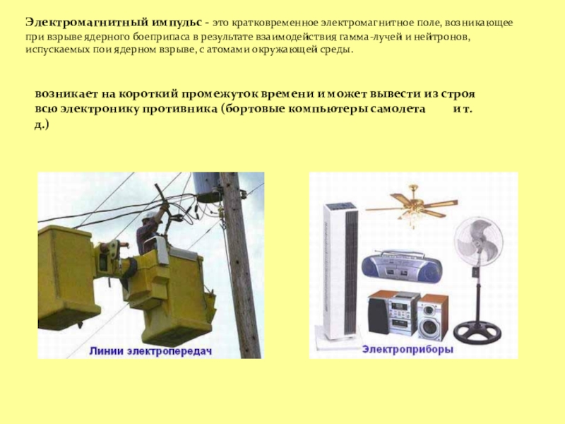 возникает на короткий промежуток времени и может вывести из строя всю электронику противника (бортовые компьютеры самолета и т. д.)
